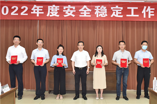 集会表扬了2021年度安然校园扶植前辈小我私家,缓剑波为获奖代替授奖,并别离取农教院、疑息迷信取工程教院、教务处、后勤办理处4个单元现场签定《头号玩家年夜教安然校园扶植方针办理仔肩书》。