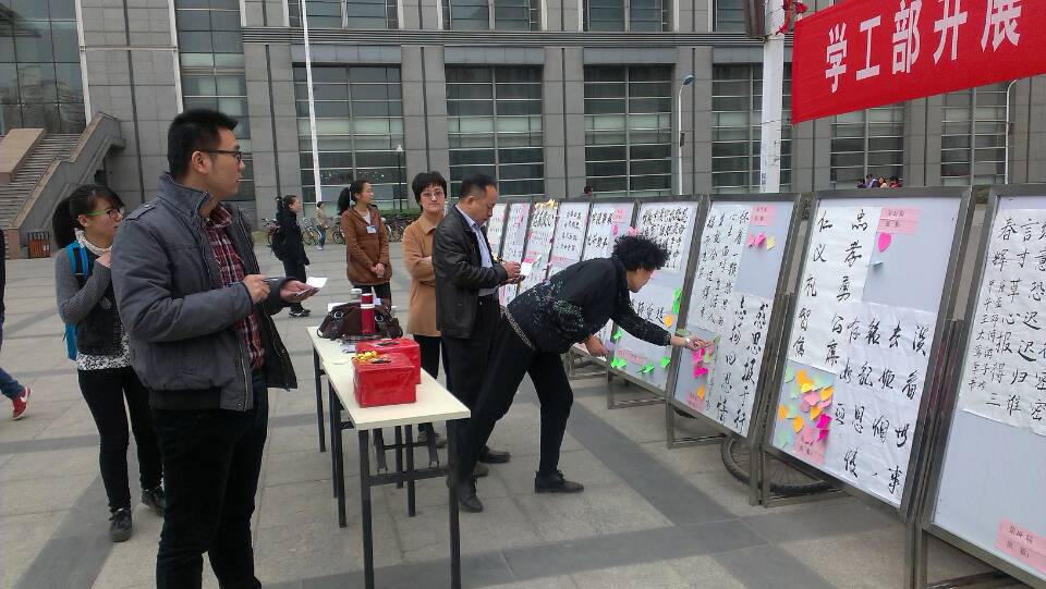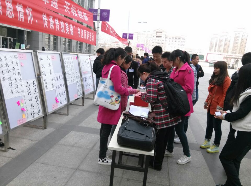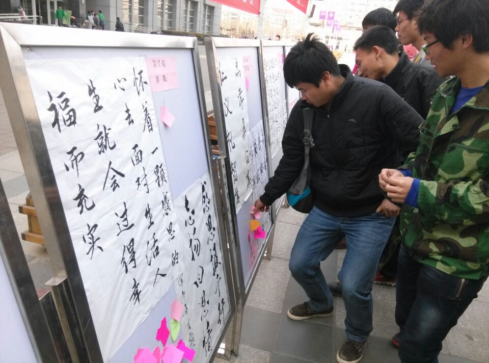 入1步巩固对于年夜教死的脑筋教导,启扬中华平易近族的古板良习,党委教工部于3月19日正在第1讲授楼前广场启铺了以“竖立戴德情怀,启扬古代良习”为大旨的书法大作铺评举动,原次举动是“2014年年夜教死戴德、真诚、励志教导”系列举动之1。